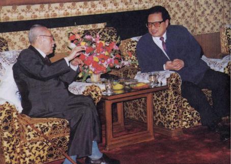 原全国人大常委会委员长乔石在钓鱼台国宾馆会见董寿平(1995年)
