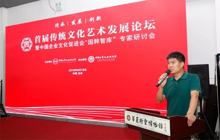 北京华夏珍宝博物馆董事长孙嵩林做“国粹智库在弘扬优秀传统文化艺术中实现社会价值”发言。