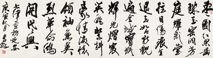 这些作品大多似曾相识,在华夏珍宝博物馆历年来的推介序列中,多有类似佳作问世,如于右任的草书”为万事开太平“;陈半丁的“大写意花卉”;董寿平的“墨竹、梅花”;白雪石的“桂林山水”;周怀民的“新山水”;喻继高的工笔花鸟;冯大中的“写意虎”……