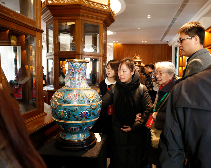 2018年9月14日,由上合秘书处、北京工美集团、华夏珍宝博物馆联合举办的“让艺术成为连接世界的桥梁‘上合使节文化交流活动’”在我馆举行。来自上合组织成员国使节及夫人、外交部官员、中国文化艺术界专家领导40余人参加。袁长君大师现场展示花丝镶嵌技艺,得到了到场嘉宾的高度赞誉。