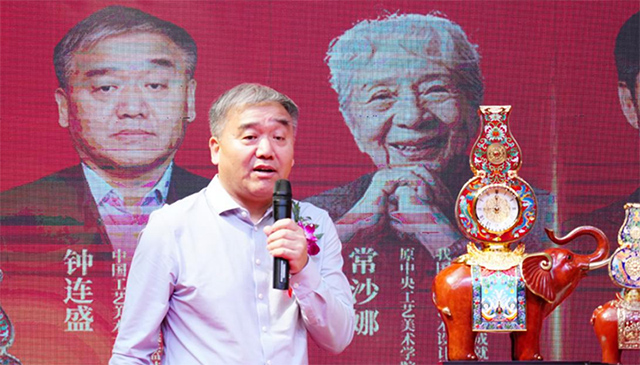 2023年8月5日,“从伟大时刻到吉象升平——铜道钟仁:朱炳仁钟连盛铜雕景泰蓝全国艺术大展”在北京华夏珍宝博物馆启幕。钟连盛大师出席活动并致辞。